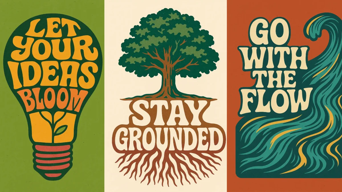 Think about the relationship between your quote and your visual element. “Go With The Flow” works perfectly with a river because the words can literally flow like water. “Stay Grounded” pairs naturally with tree roots.