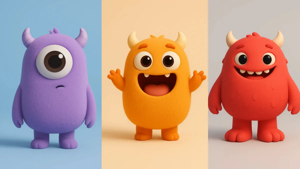 The second half of the prompt defines the visual style. I specify “3D cartoon with clean lines, solid colors, minimalist design, and rendered like Blender” to get that modern, polished look. This creates monsters that appear three-dimensional but still have that cartoon charm.
